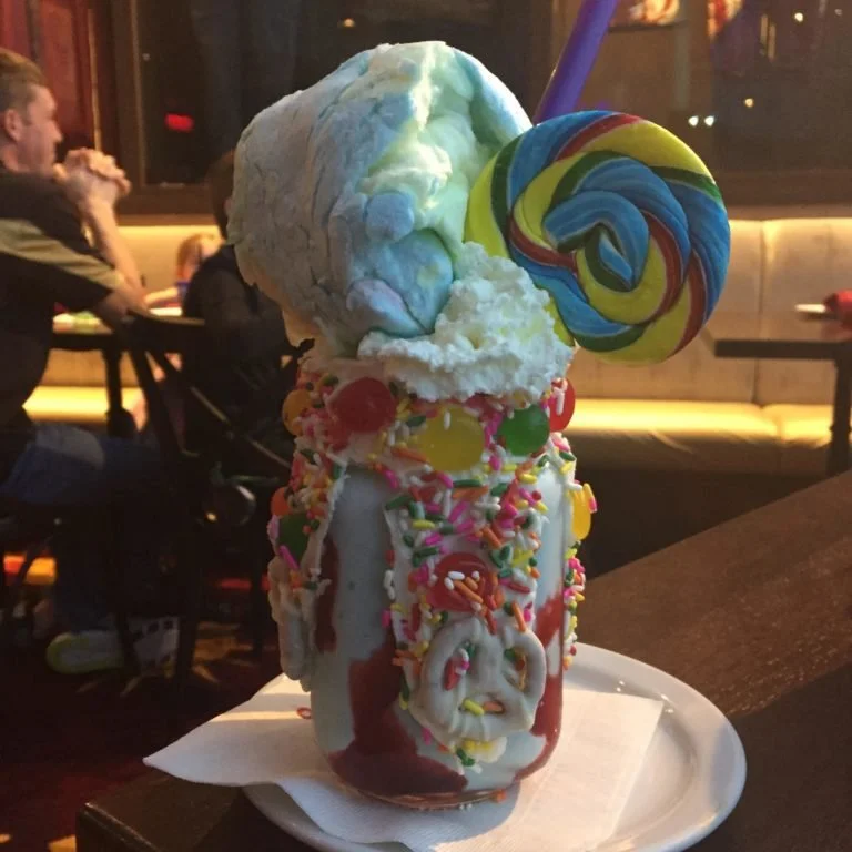 Thrust yourself into the Toothsome Family heritage at Toothsome Chocolate Emporium in Universal Orlando CityWalk. This bazaar of sugary confections offers anything your heart could desire. Their grandiose milkshakes are served in large mason jar-like containers. Toppings include crushed candies, brownies, and even whole cupcakes.