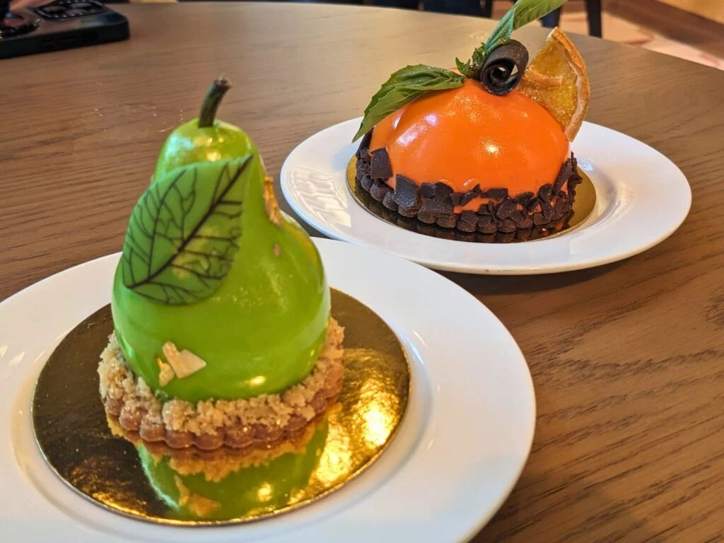 The Citrus Dome is made with mascarpone cream, Grand Marnier, blood orange, vanilla cake, and chocolate sablé (crumble). This gorgeous dessert is the perfect balance of flavors and goes wonderfully with a glass of bubbles or even a cup of coffee.