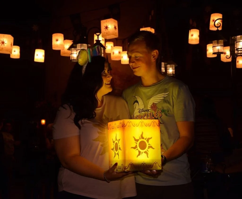 You'll find this location tucked at the edge of Fantasyland near Liberty Square in the courtyard that is themed after the movie Tangled. During special events in the evening, you can sometimes find a photographer here snapping photos with a glowing paper lantern prop. This special photo op has proven to be a favorite among friends, families, and couples alike.