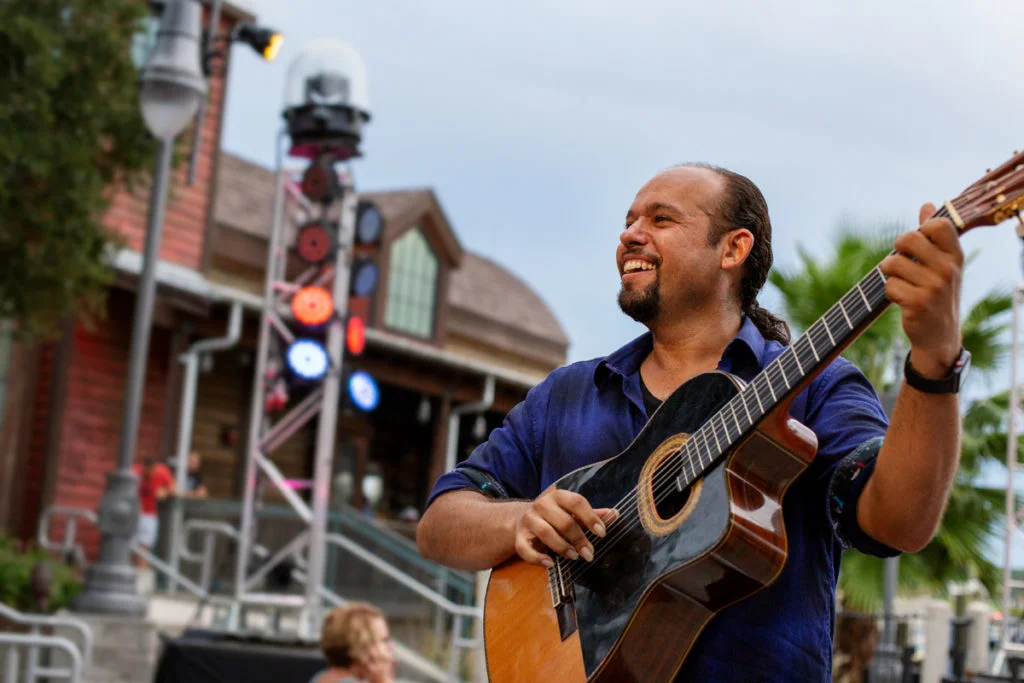 There are multiple plazas and outdoor stages throughout Disney Springs where you'll typically find live musicians and performers, especially in the evenings and on weekends. Pick a seat and enjoy the free entertainment! House of Blues Orlando also has free live music on their outdoor patio, The Front Porch. Bonus: The Front Porch offers happy hour deals on beer and wine from 11:30am-5pm.