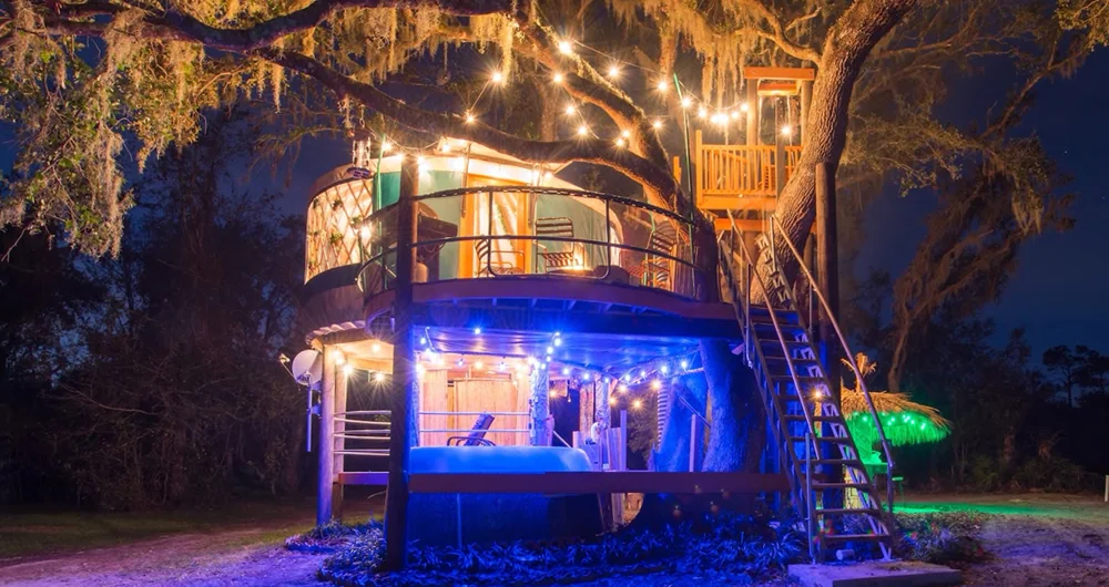 Bonus idea! Another great Treehouse Airbnb in the Orlando area is in Kissimmee. It's not too far from the attractions area and is perfectly unique. It's basically a bungalow in the trees. Experience camping in a high-class way with all the amenities of a first-class hotel.