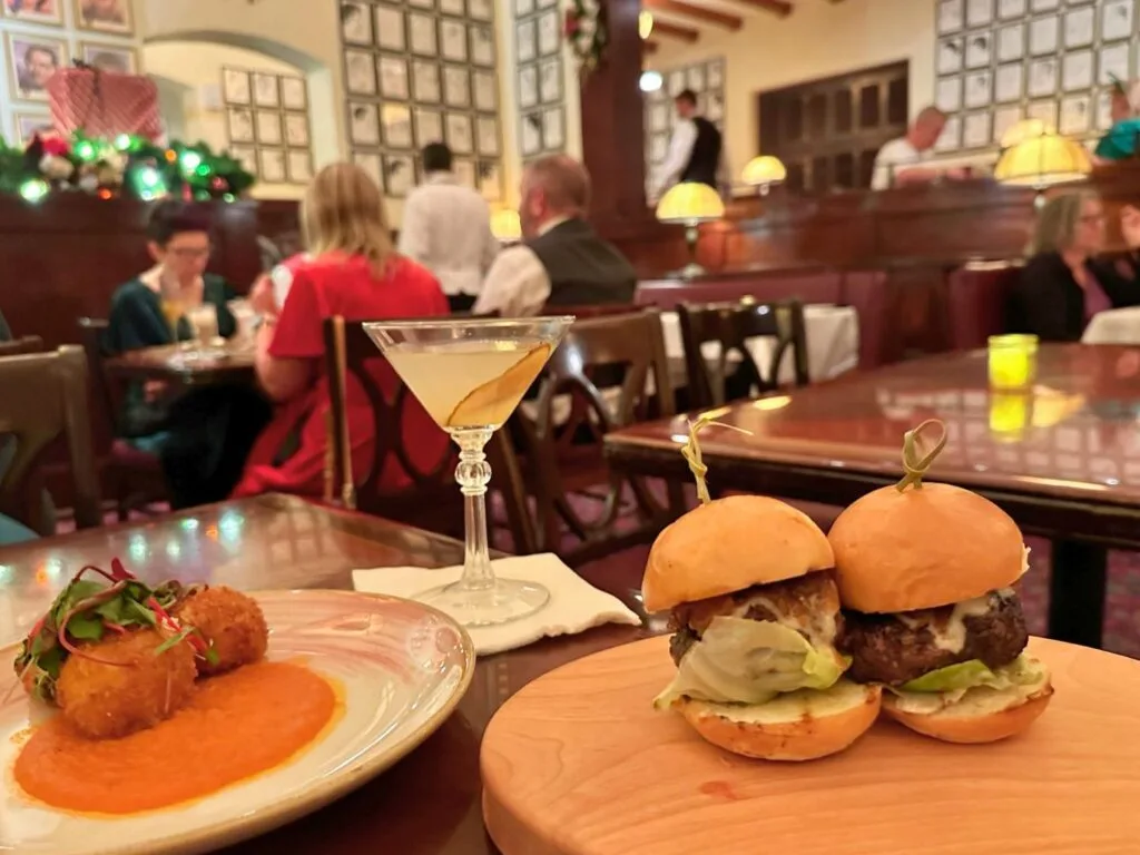 Important note – To experience the festive fun of Jazzy Holidays at The Hollywood Brown Derby, you can request to join the walk-up waitlist on the My Disney Experience app. This must be done at 8:15pm, and you must be standing at or very close to the restaurant. Based on opening night impressions, do not feel bad if this experience does not work out. The food is good, and the atmosphere is nice. However, the entertainment is a live piano player, playing Disney and jazz songs. It is a nice touch, but not something overly impressive.