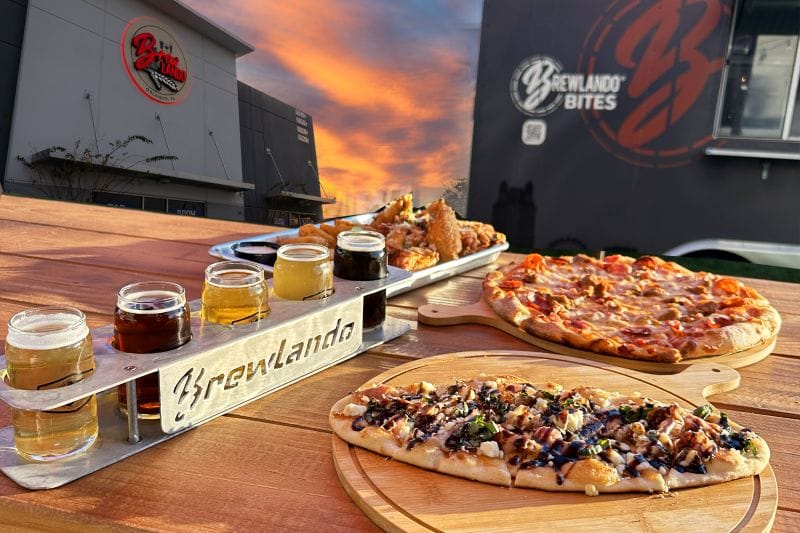 Pair your pours with pizza, flatbreads, and small bites, perfect for sharing! Brewlando's ICON Park location is ideal for date night, with a picturesque setting for a stroll, an added dessert stop, or enjoying nearby attractions, turning a simple outing into a full date night experience.