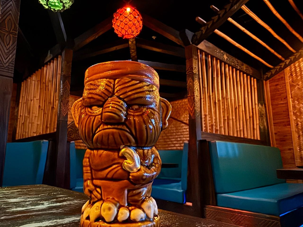 Tucked indoors is The Roost, a more traditional tiki escape designed by Typhoon Tommy, known for revamping iconic spots like the Mai-Kai and Suffering Bastard (a favorite Orlando area hidden bar). This is where Dirty Birds shifts from beach bar to true tiki lounge. Expect bamboo walls and ceilings, carved tiki masks, cozy booths, moody lighting, and a secret cocktail menu that’s absolutely worth seeking out.