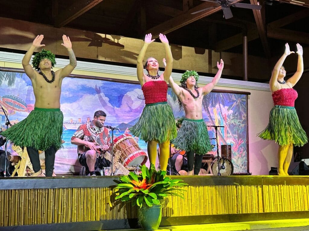 Later in the evening, audience members had the opportunity to take the stage if they so desired. My son and I jumped up to learn some hula moves before the main show began. It felt exhilarating to have that on-stage moment with my son and other families.